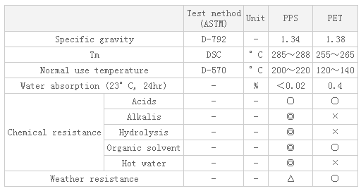 Kiváló hőállóság (folyamatos felhasználási hőmérséklet: kb. 200-220 Celsius fok) Nagyon kiváló kémiai ellenállás (esetleg oxidatív savval korrodálható magas hőmérsékleten) Kiváló hidrolízis-ellenállás Kiváló a láng-retardáció (UL-94 VO) Rendkívül alacsony víz -abszorpciós sebesség és jó dimenzió stabilitásKi kiváló elektromos tulajdonságokkal rendelkezik Szövet és papír gyártása; szűrő ruhával; Itt bemutatjuk PPS monofilénünk reprezentatív minõségét. A PPS monofilamentek zsugorodási tulajdonságait az ügyfél igényei szerint alakíthatjuk ki. A PPS monofilamentek értékelése a hőállóság és a hidrolízis ellenállás tekintetében azt mutatja, hogy hosszú ideig képes megőrizni a szilárdságot. A monofilamentek a kemény környezetben magas hőmérséklet vagy magas páratartalom mellett alkalmazhatók. |